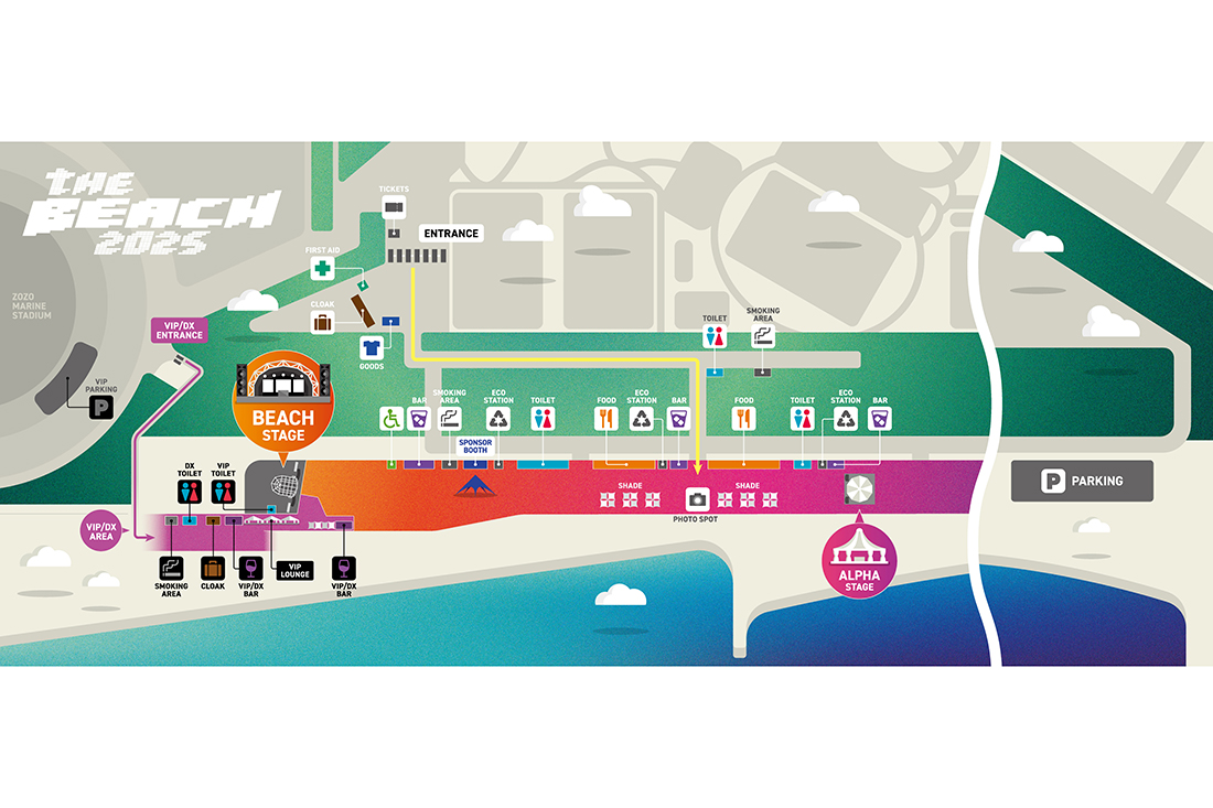 THE BEACH 2025 会場マップ、タイムテーブルのデザインを担当いたしました。