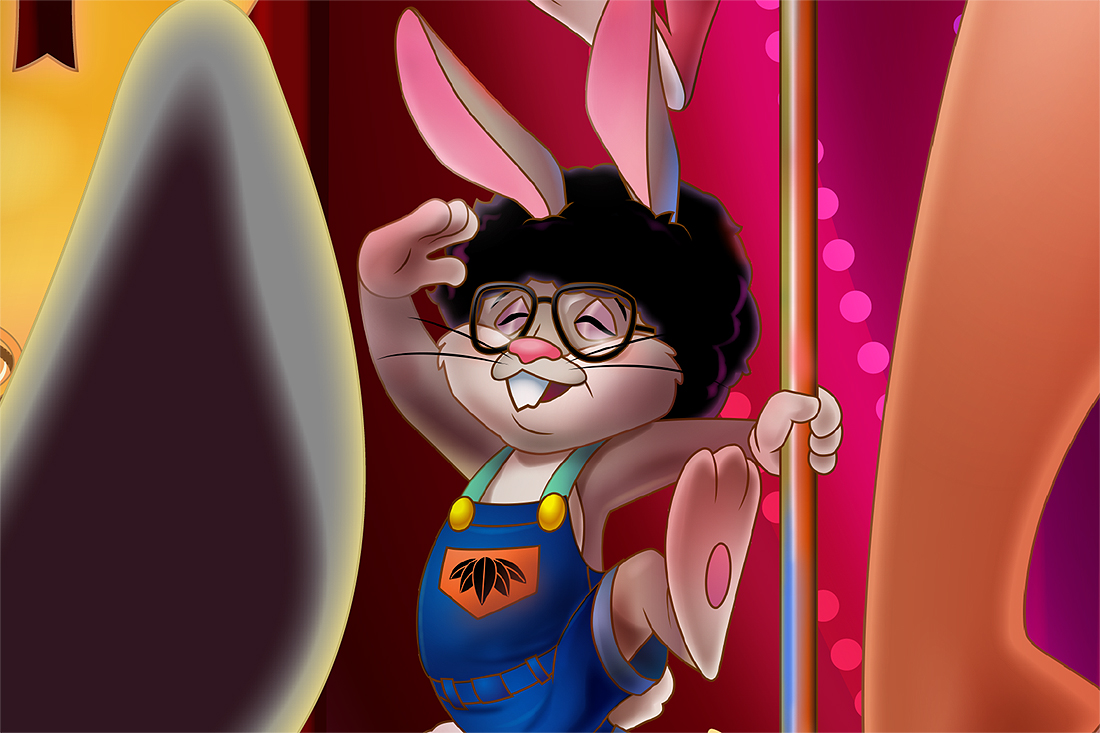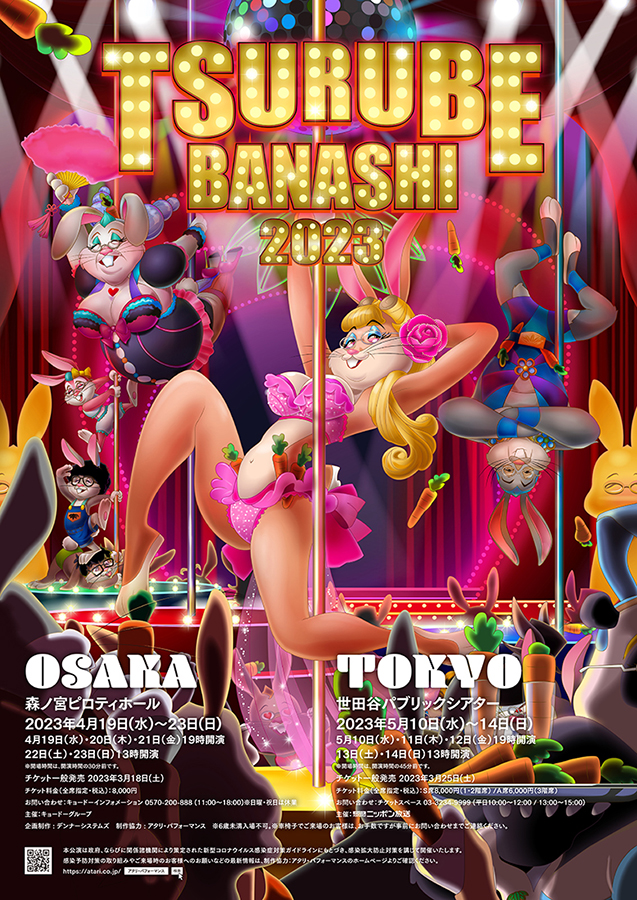 笑福亭鶴瓶さんの「鶴瓶噺」のポスター。今年は鶴瓶さんにウサギ(干支)のポールダンサーになってもらいました。