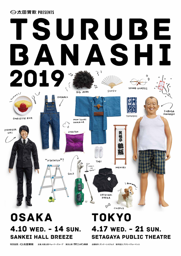 笑福亭鶴瓶さんの「鶴瓶噺」のポスター。鶴瓶さんにまつわるアイテムとご本人のフィギュアを制作し撮影しました。